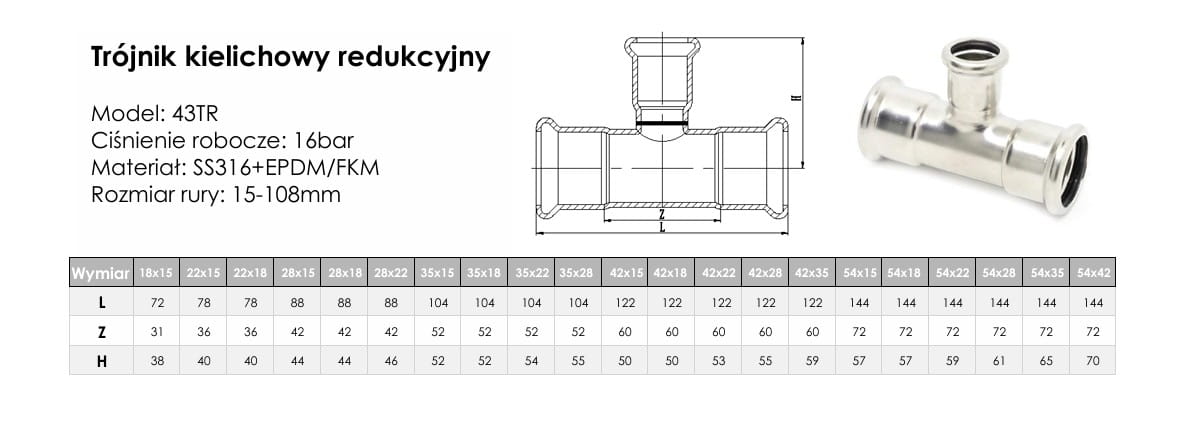 Trójnik kielichowy redukcyjny systemu HF-Press